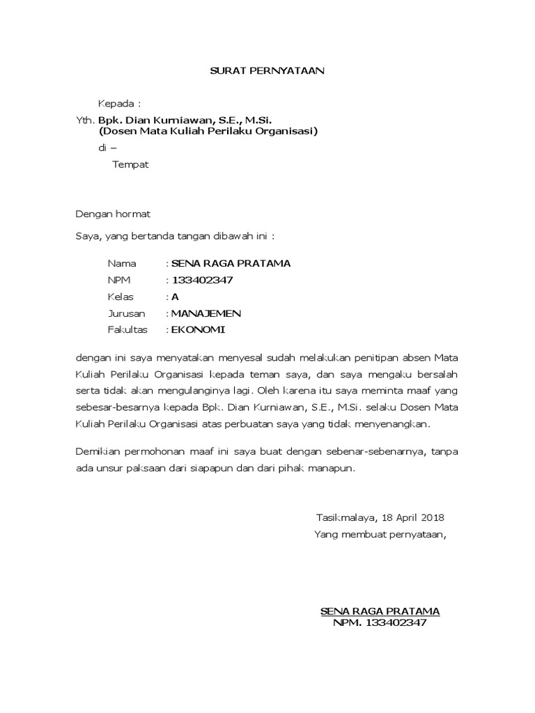 Contoh surat permohonan mahasiswa teknik 1. Contoh surat pernyataan mahasiswa yang bermasalah 16 Contoh Surat Permohonan Maaf Mahasiswa Kepada Dosen Contoh Surat. Admin blog Berbagi Contoh Surat 2019 juga mengumpulkan gambar-gambar lainnya terkait contoh surat pernyataan mahasiswa kepada dosen dibawah ini. Contoh Surat Permohonan Maaf Kepada Dosen. Untuk masalah yang tidak terlalu besar mungkin cukup diselesaikan dengan cara lisan. Contoh surat pengunduran diri mahasiswa dan dosen contoh surat pengunduran diri beasiswa kuliah.